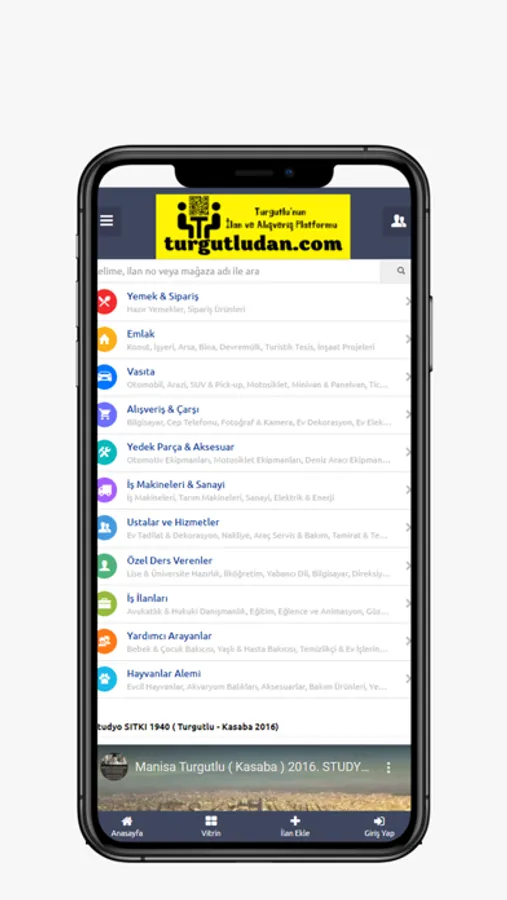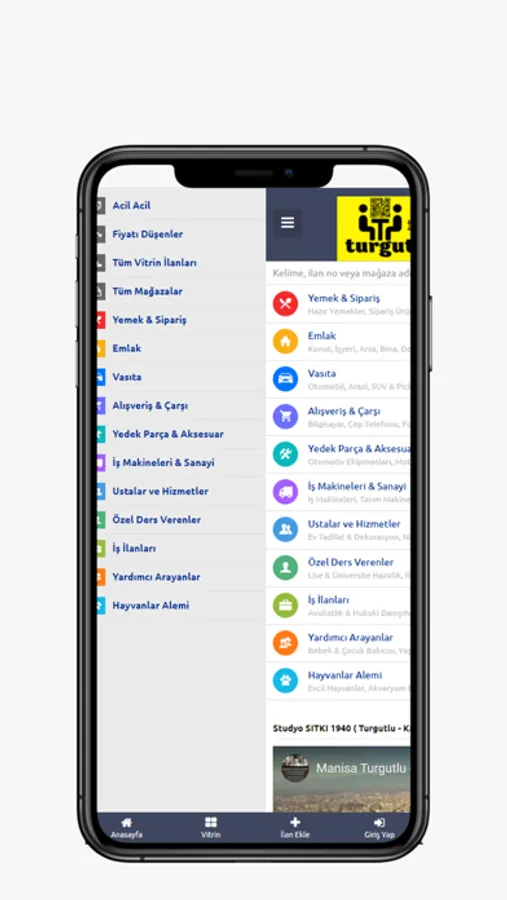 Emlak, Vasıta, Alışveriş, İş Makineleri & Sanayi, Yedek Parça-Aksesuar-Donanım & Tuning, Hizmetler, İş İlanları, Hayvanlar Âlemi, Özel Ders Verenler ve Yardımcı Arayanlar olmak üzere toplam 10 kategoride hizmet veren Turgutludan Uygulaması