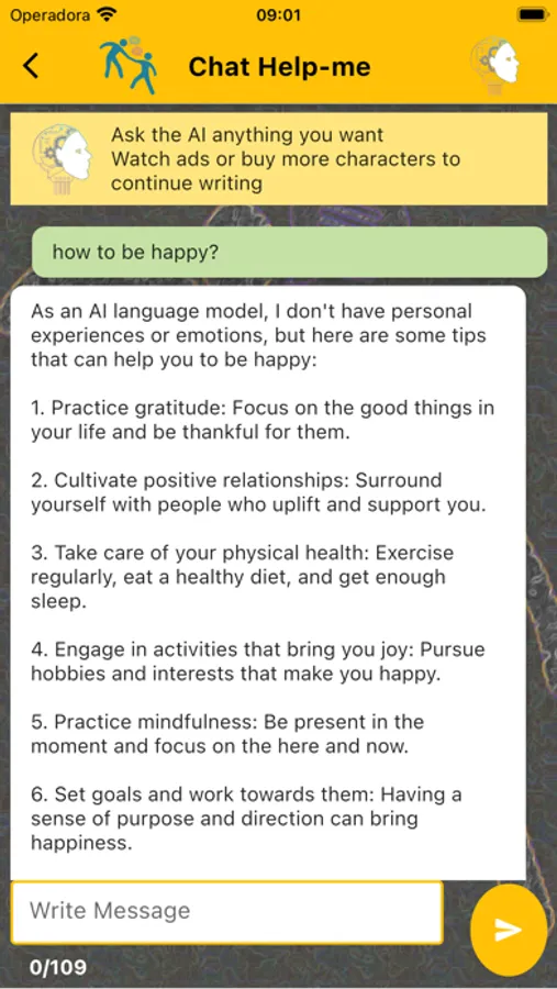 The robot answers all questions and the health professional, will give you a help with emotional disorders such as depression, anxiety, stress, emotional dependence, etc.