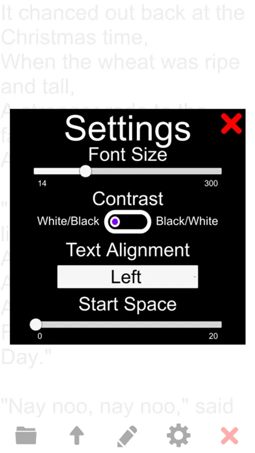 Teleprompter is a tool that will help you speak more fluently in your videos and presentations. In the application you can control the font size, the space between and the start time, the contrast and the alignment of the text.