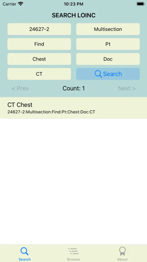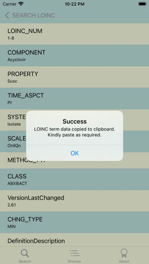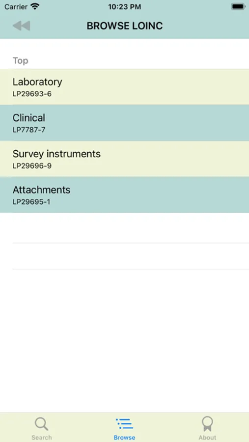 On the Browse tab, users can browse LOINC in a hierarchical manner. Once a desired LOINC term is selected, it is copied to the device clipboard.