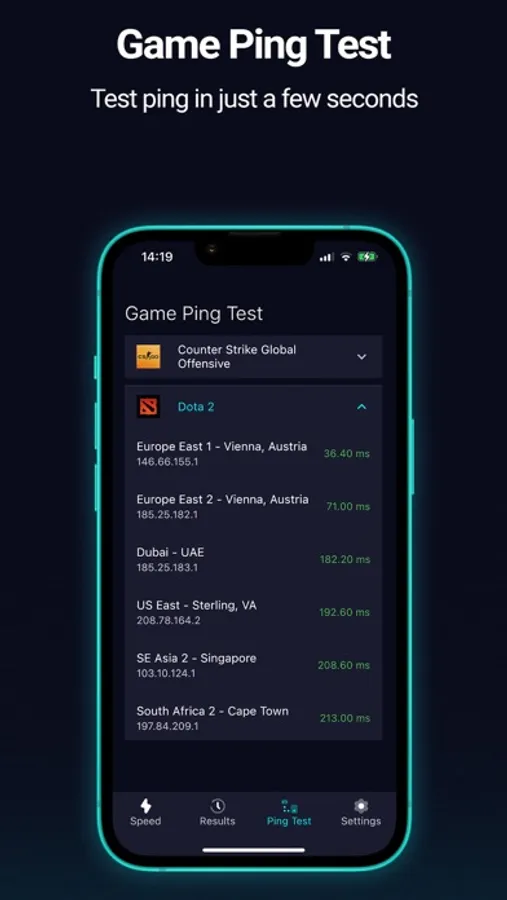 Use speed test mobile app to perform a mobile internet ping and speed test, exactly anywhere, thanks to our huge worldwide server system.
