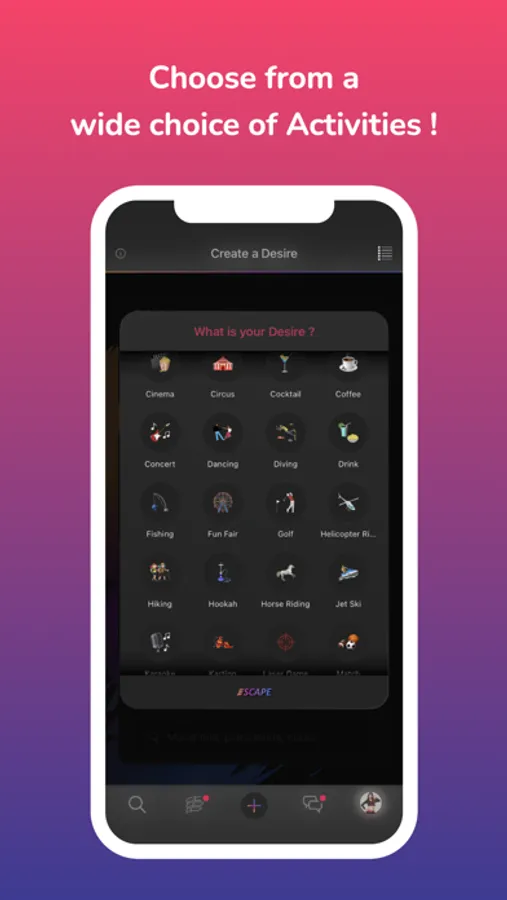 With Escape, no more endless discussions, do not waste your time and meet people around an activity ! Golf, Bowling, Theater, Karaoke, Hiking, Aperitif ...