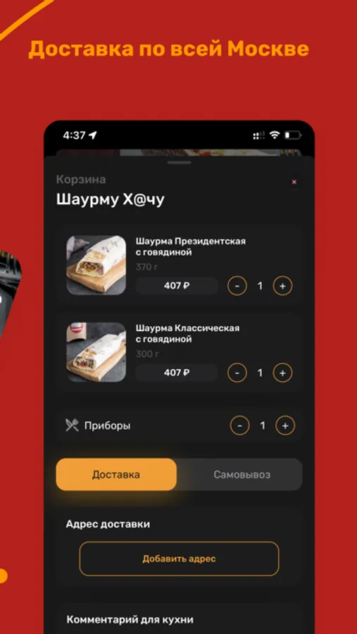Возможность оформить самовывоз из ресторана.