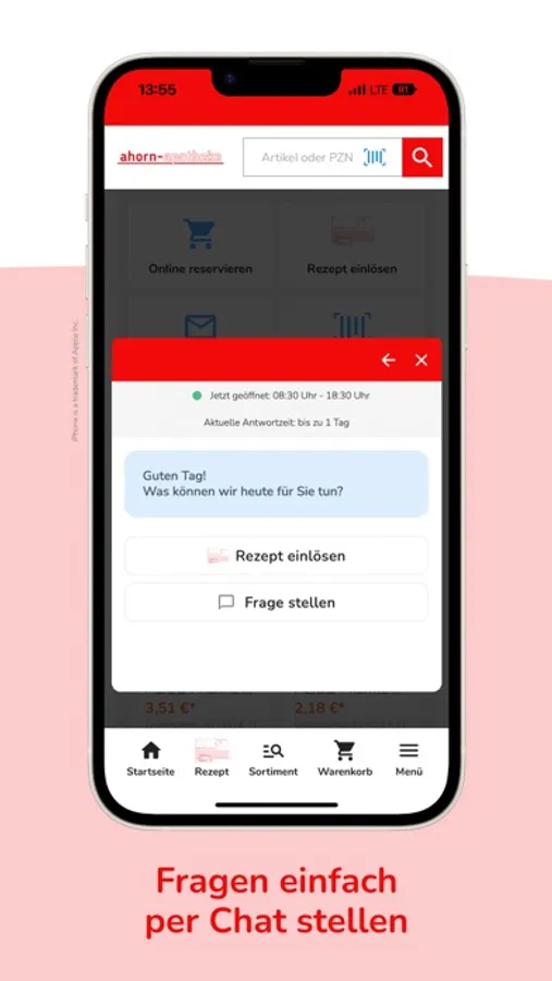 Wir bieten Ihnen über die App unser gesamtes Sortiment. Nicht sofort verfügbare Produkte bestellen wir für Sie und machen Sie in der Regel bis zum nächsten Werktag abholbereit. Gerne liefern wir Ihnen Ihre Bestellung auch bis zur Haustür.