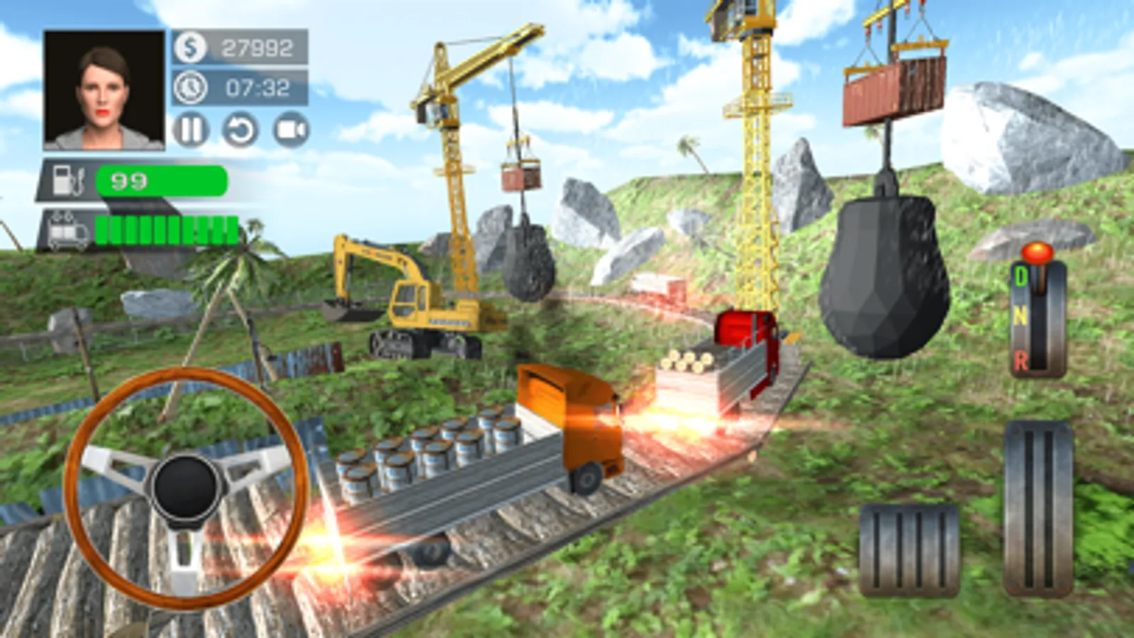 While driving you need to avoid other trucks, traffic cars and try drive carefully because you can crash or damage your construction load, cargo on dangerous site, mountains, hills and roads.