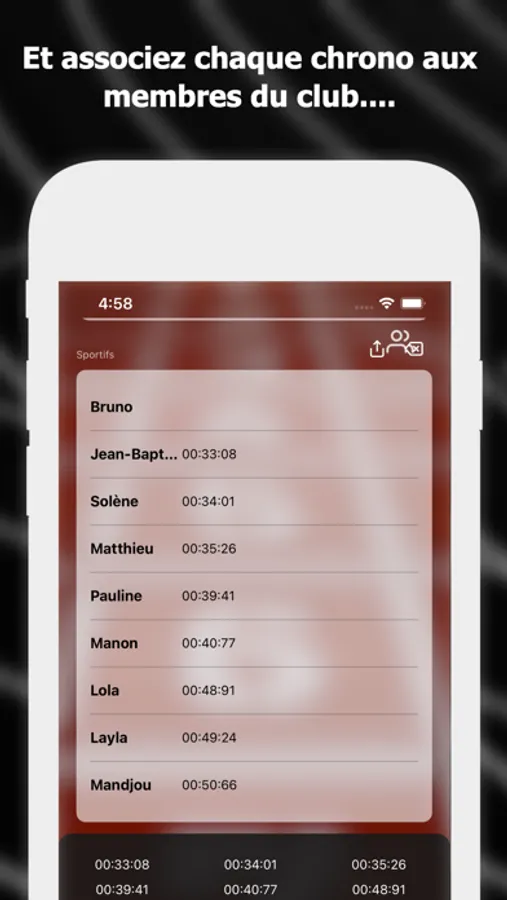 3) Quand la séance de sport est terminée, il vous suffit d'exporter les chronos et de les partager à tous ;