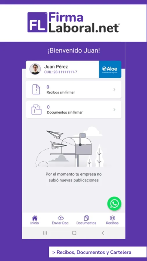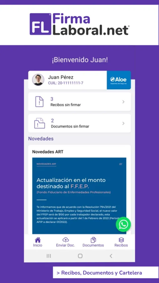 Su personal podrá disponer en cualquier momento y lugar sus recibos, ademas de poder utilizar nuestra App para enviarle información a la empresa e inclusive firmarla digitalmente. Su personal podrá subir y autogestionar: