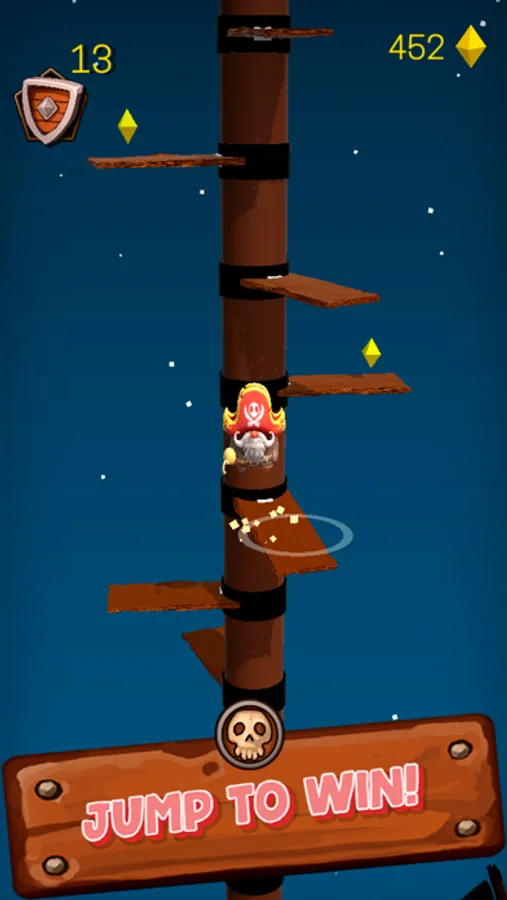 Pirate jump is a fun pirate style casual game, your main goal is to help the pirate captain get to the treasure. You need to rotate the mast so that the captain can jump on the board and climb to the top of the treasure chest. All the gold you collect can be used to upgrade to even more levels. You have a lot of exciting levels that will test your reaction and diligence. To speed up the passage of the level on the platform are boosters that help you quickly get to the chest. The game is free and does not require an internet connection.