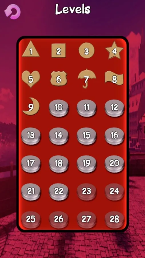 22 levels available: Triangle, square, cloud, car, squid, umbrella, fish and many more.