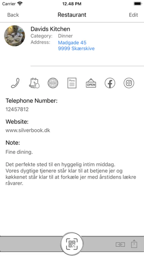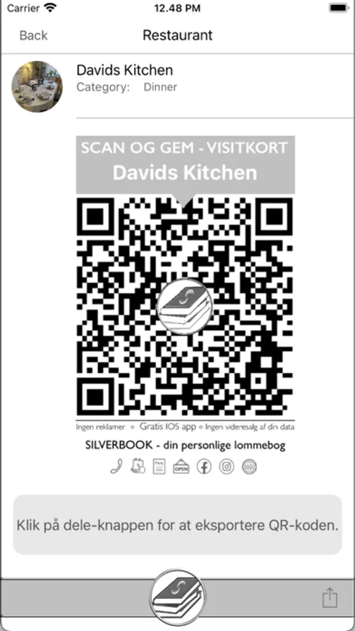 Please note that unlike the Silverbook app, which only stores data on the user's own device, Silverbook QR CC's data is stored on HollyDesign's secure server. This is necessary to give your customers access to retrieve the information you want to share with them via Silverbook's QR codes.