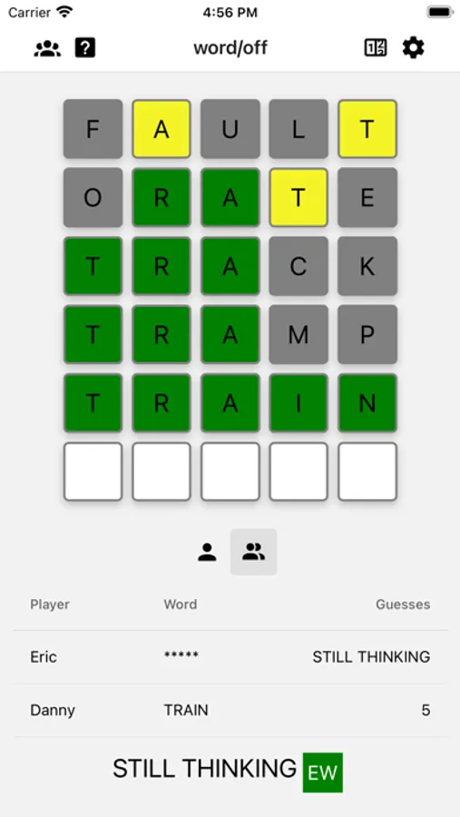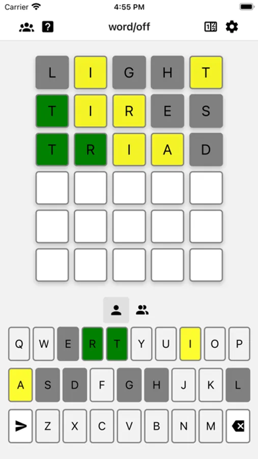 Try to guess your opponent's word in less tries than it takes them to guess yours!