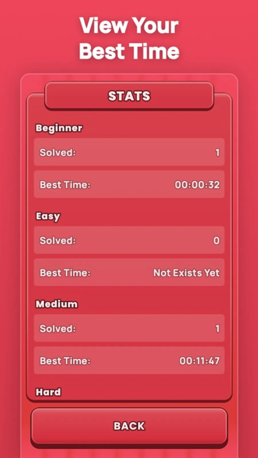 - 6 different puzzle difficulties: BEGINNER, EASY, MEDIUM, HARD, EXPERT, LEGENDARY,