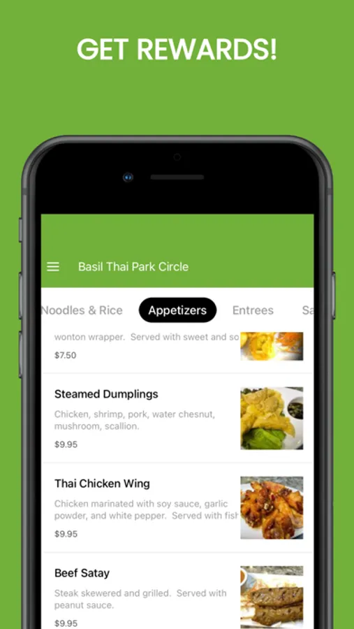 The Basil Thai Park Circle app is a convenient way to pay in store or skip the line and order ahead. Rewards are built right in, so you'll collect Stars and start earning free drinks and food with every purchase.