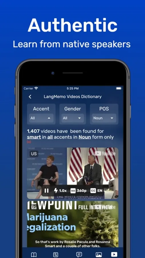 • Multiple accents: It doesn't matter which accent you are learning! LangMemo contains more than 100 Million videos divided into 7 accents (UK, US, AUS, CA, IE, SCO, and NZ).