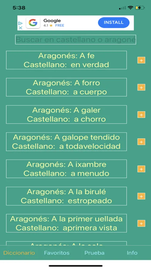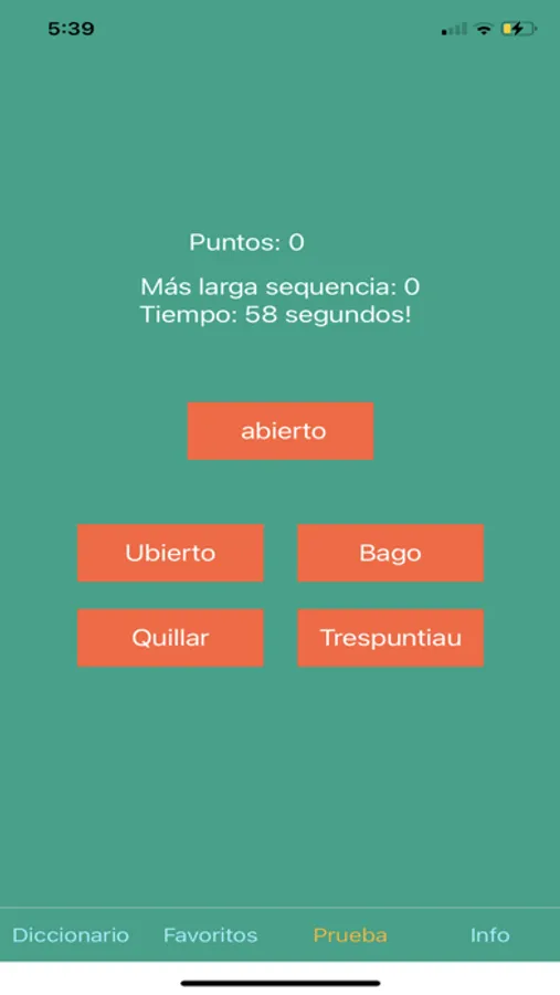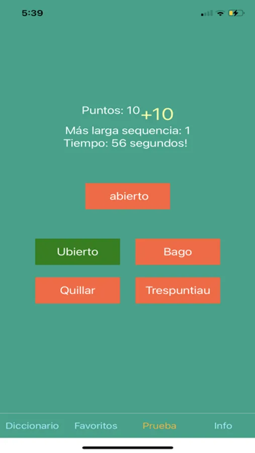 Puede "marcar como favoritas" las palabras que encuentre en el diccionario y usarlas en una prueba, o simplemente usar la prueba en modo aleatorio.
