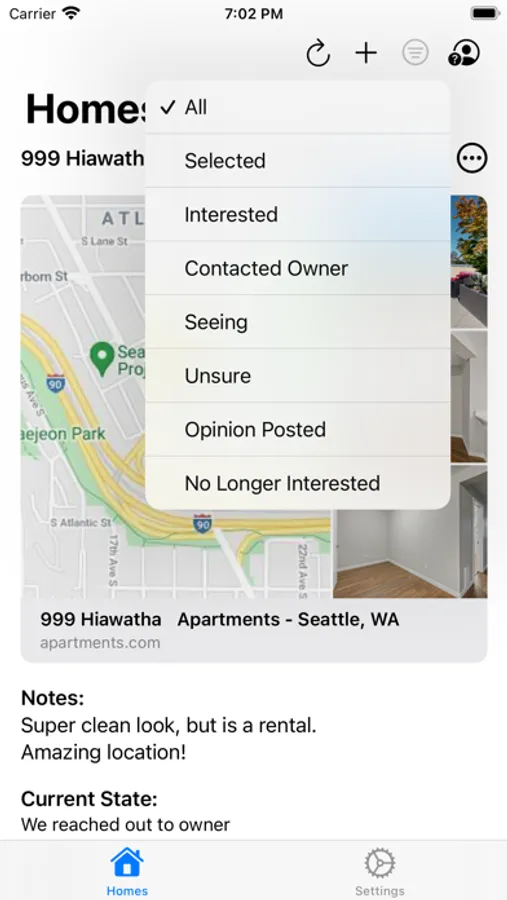 The home search is a stressful process. It can be hard to keep track of every home you are interested in and where you are in the process. This app can help!