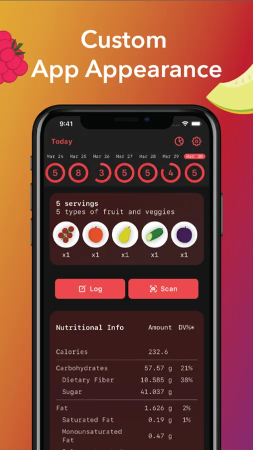 With Daily 5, you can easily track your progress and make sure you're getting enough fruits and vegetables every day. And with the Pro version, you can unlock even more features, including complete nutritional information, the ability to scan your fruits and veggies with the camera, sync nutrients info with HealthKit, and customizable themes, fonts, and icons.