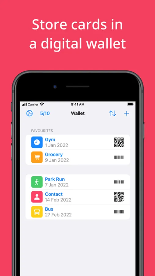 Store all your barcodes, QR codes, loyalty cards, reward cards, gym cards and more in a digital wallet. Always be able to display and use your important cards on your phone, your watch, or even from a widget on your home screen!