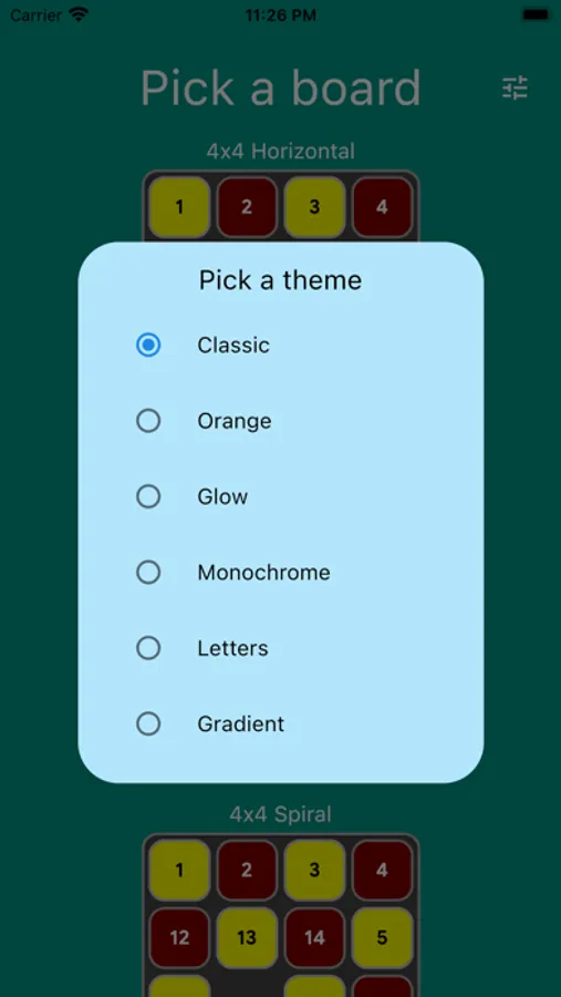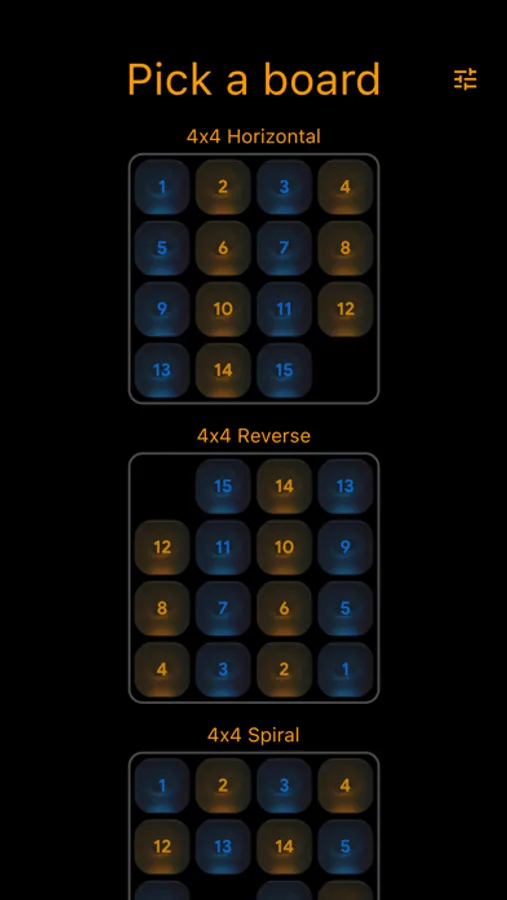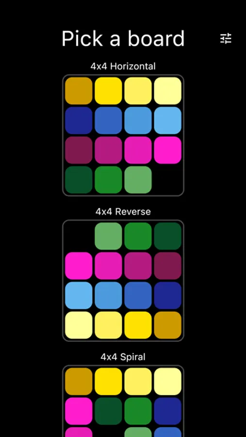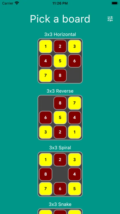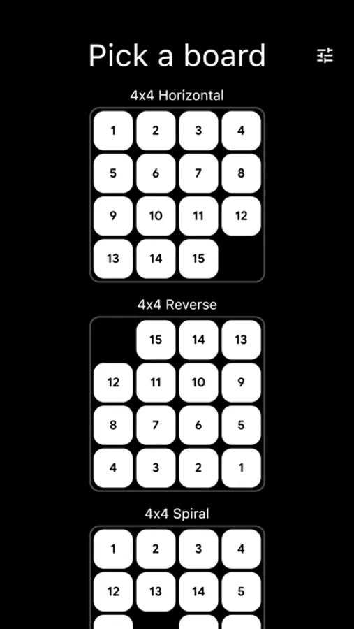 Pick your board and solve the puzzle in the least number of moves. Or just use Auto Play and enjoy the zen while the computer does the playing for you, using an A* algorithm to get to the solution.