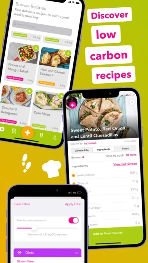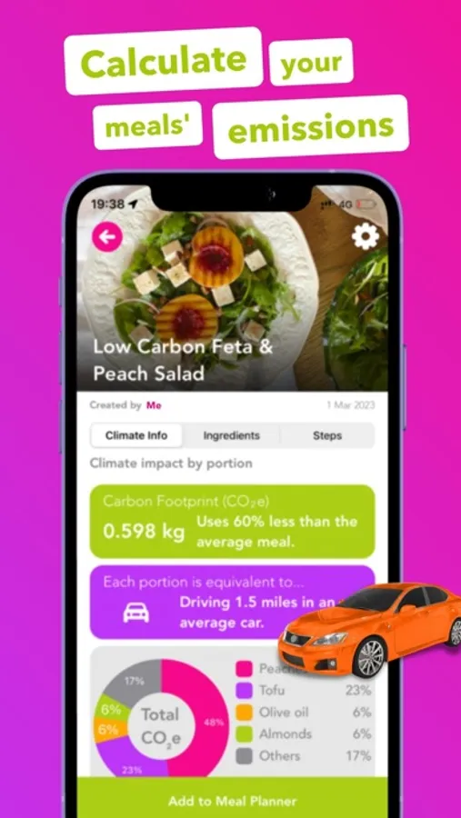 • FIND SUSTAINABLE RECIPES: Discover tasty in-app recipes inspired by kitchens across the globe, giving you easy ways to introduce low-carbon meals into your week. You'll find recipes for diet: meat lover, flexitarian, climatarian, pescatarian, vegetarian, and vegan recipes included.