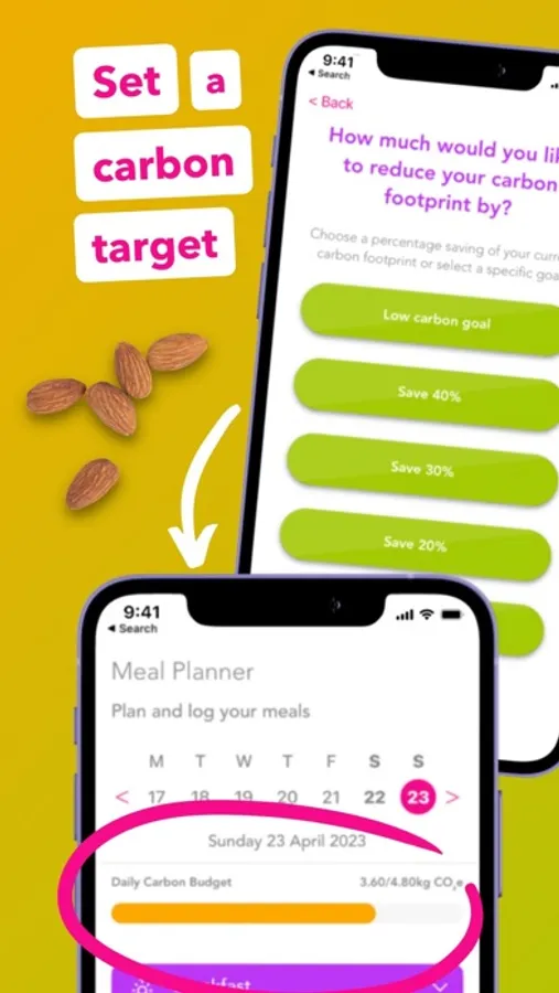 • CARBON FOOTPRINT TRACKER: Set a carbon target to help reduce your carbon footprint. Log meals eaten over the week to track against your carbon target and compare the greenhouse gas emissions of your meals.