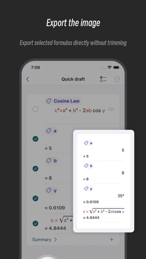 - Independently select the calculation type to generate pictures for export and sharing, eliminating the need for stitching and cropping.