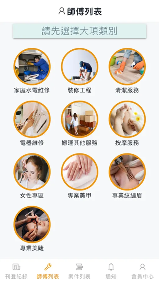 師傅,可以刊登自己的專長和自我介紹,專長例如家庭水電維修、裝修工程、清潔服務等。