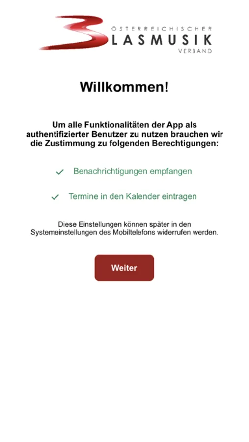 For reasons on the regulations of GDPR, at the first start of the Blasmusik - APP it is asking for some Permissions.