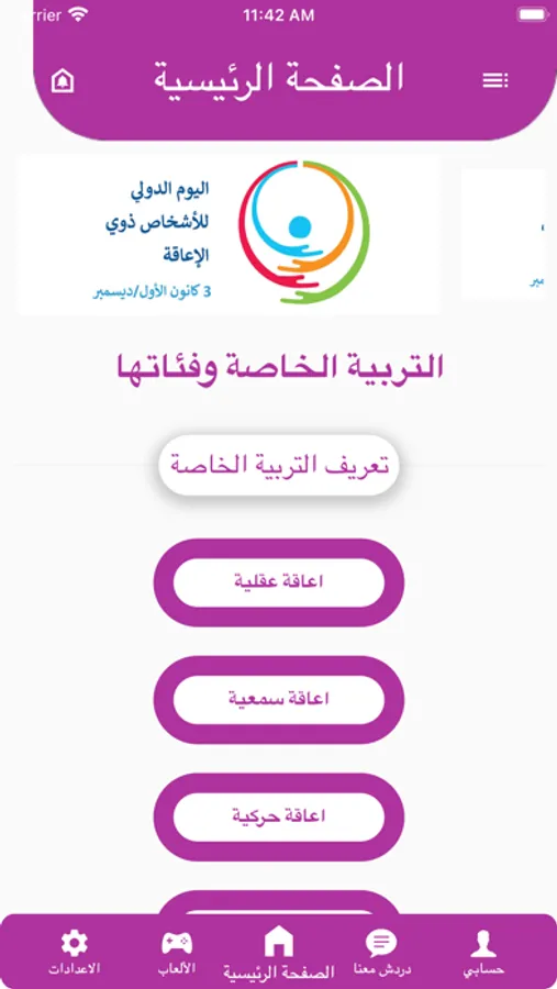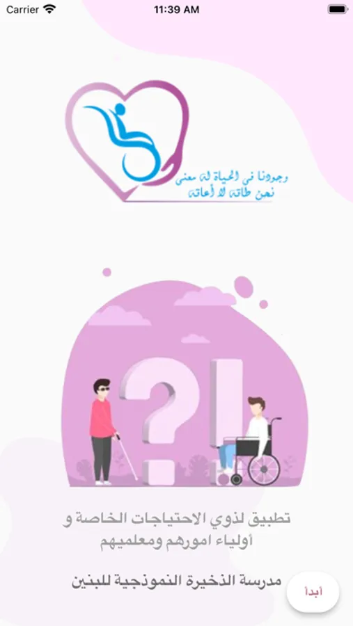 هو تطبيق يقدم خدمه لطلاب ذوي الاحتياجات الخاصة وأولياء أمورهم والعاملين معهم، وعند القيام بتسجيل الدخول يطلب من المستخدم تحديد ان كان معلم أو ولي أمر لطالب من ذوي الاحتياجات الخاصة وبناء على ذلك يتم تقديم الخدمات