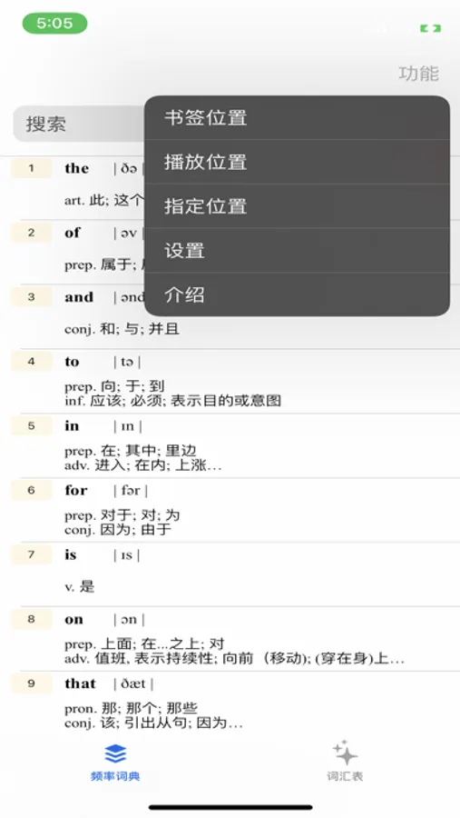 《频率词典》可帮助高密度记单词、快速提升词汇量。频率排序,省时省力。主要功能如: