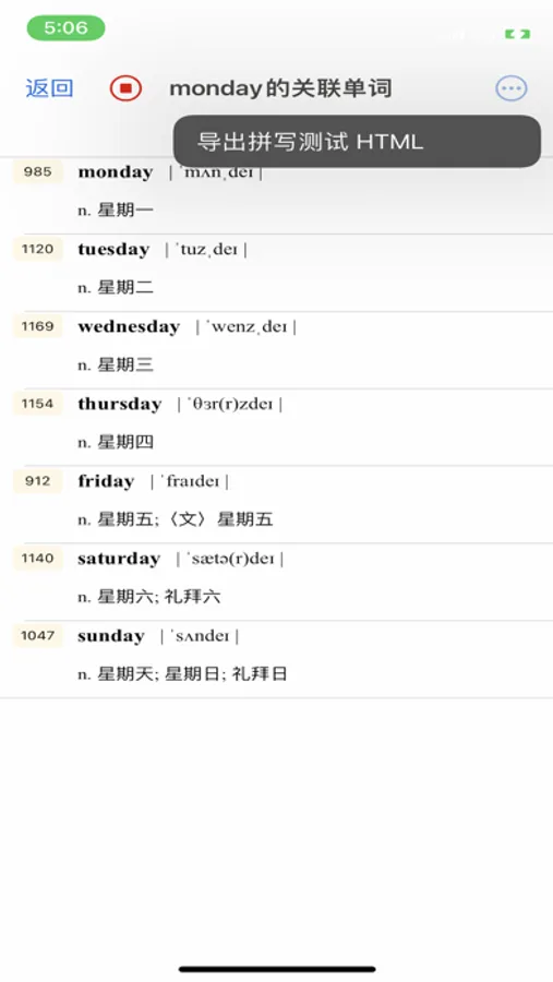 词汇表的 ‘更多’ 按钮可生成和将单词注入到 ‘拼写练习工具html’, 进而可将此页面工具分享到电脑,进行键盘拼写练习。可重复拼写这个单词来练习巩固,增强正确的肌肉记忆。同时每次拼写正确还会播放单词读音辅助全面记忆