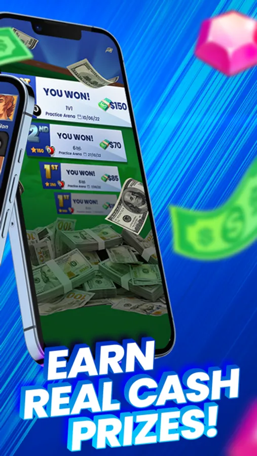 Download and practice for FREE, turn Pro, and play for real cash money in our 1v1 pool competitions and tournaments.