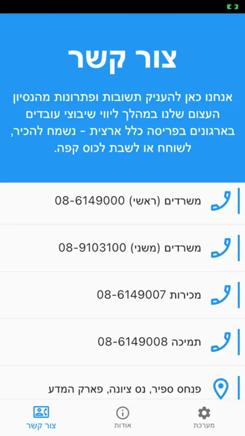 בכל בעיה טכנית, ניתן לפנות למוקד התמיכה: