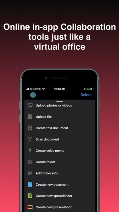 - Create new folders, add any kind of data (documents, templates, photos, videos, voice memo, etc…).