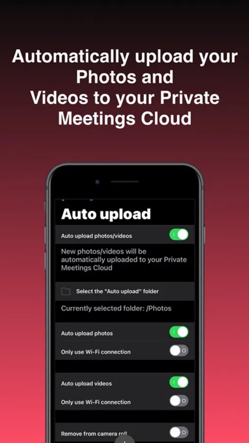 - You can enable the automatic uploading from the camera and gallery so your photos and videos will be available on your Private Meetings Cloud account.