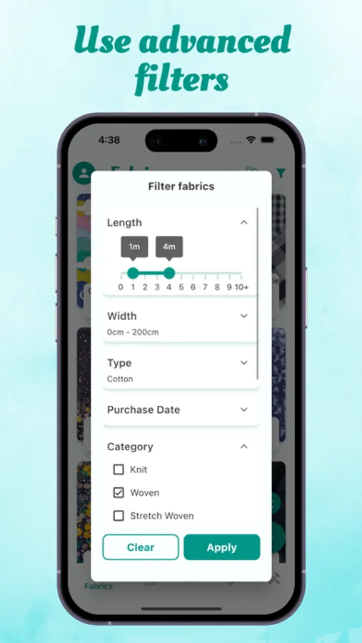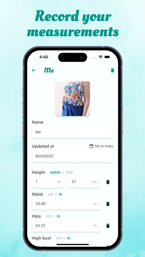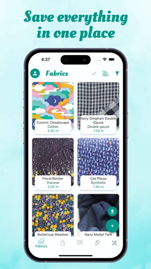 - Easily save your fabrics, patterns, projects, measurements, vouchers, notions and shopping lists