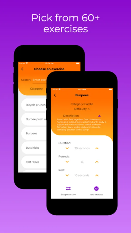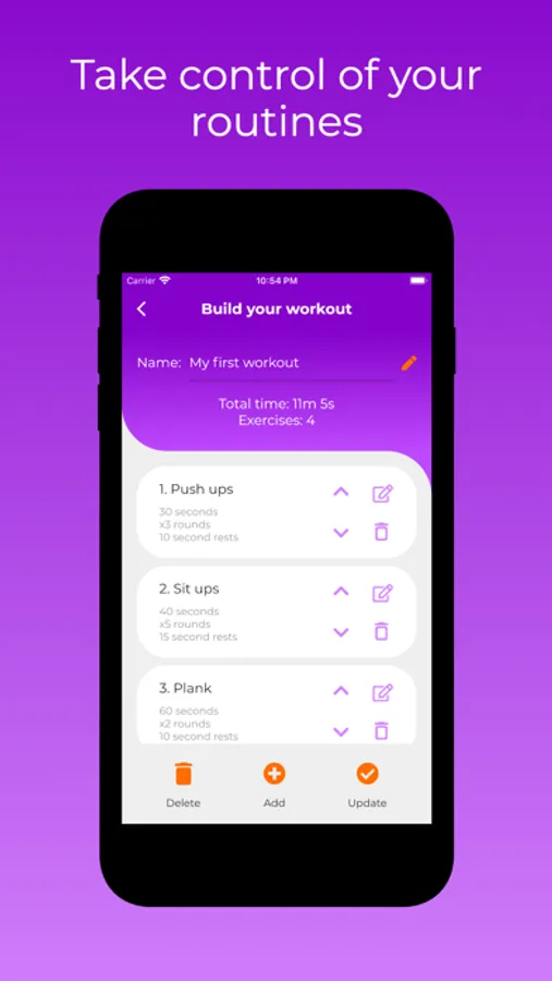 Simply create a new workout, give it a name, add your chosen exercises (controlling duration, number of rounds and rests for each) and press save.
