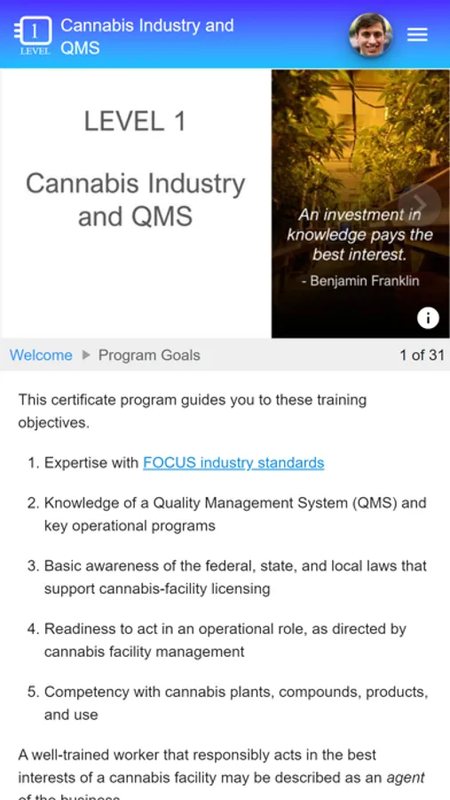 The Responsible Cannabis Agent program builds your expertise with key Quality Management System (QMS) programs.