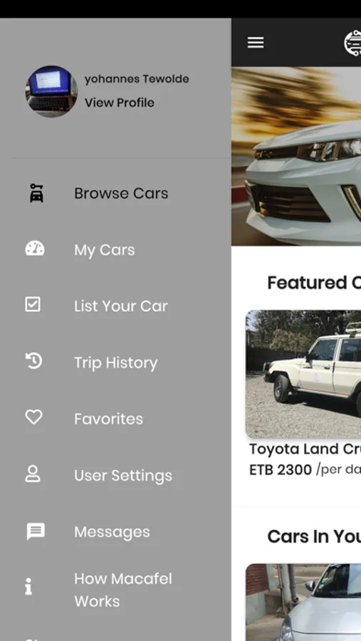 Macafel is a car sharing marketplace where you can book any car you want ,whenever you want it, wherever you want it from local hosts across Ethiopia. Macafel guests can choose from several different makes and models and categories of vehicles, while hosts earn extra money to offset the cost of car ownership.