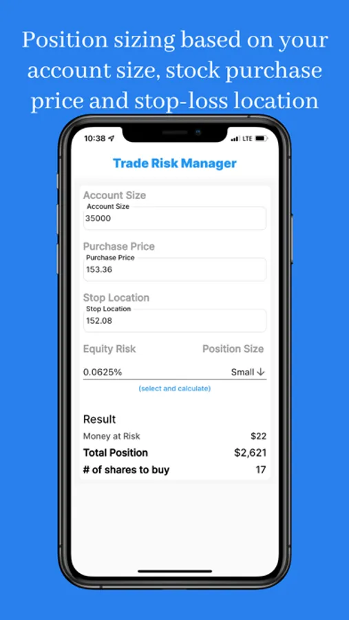 Investing is risky and could result in the total loss of invested principal, even with risk management precautions in place. Therefore, one should consider their investment objectives and risks carefully before investing. Trade Risk Manager does not offer financial advice, but functions as a calculator to measure possible portfolio risk. By using this app you are acknowledging that you alone accept full responsibility for all investment decisions made and will not hold Trade Risk Manager or its makers responsible for any losses incurred due to investing.
