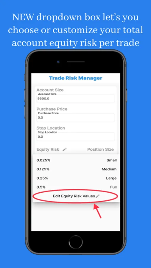 With the lastest version (1.0.4) you can now CUSTOMIZE your Equity Risk percentages or select four different default position sizes based on market conditions as shown below: