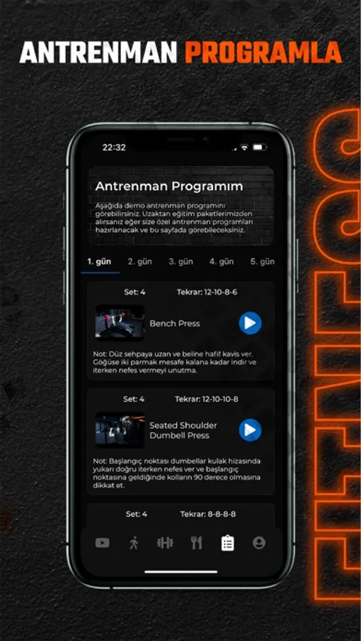 antrenman videoları bulunmaktadır. Bu videolar içerisinde karın kası, sırt – kanat, pazu, göğüs,