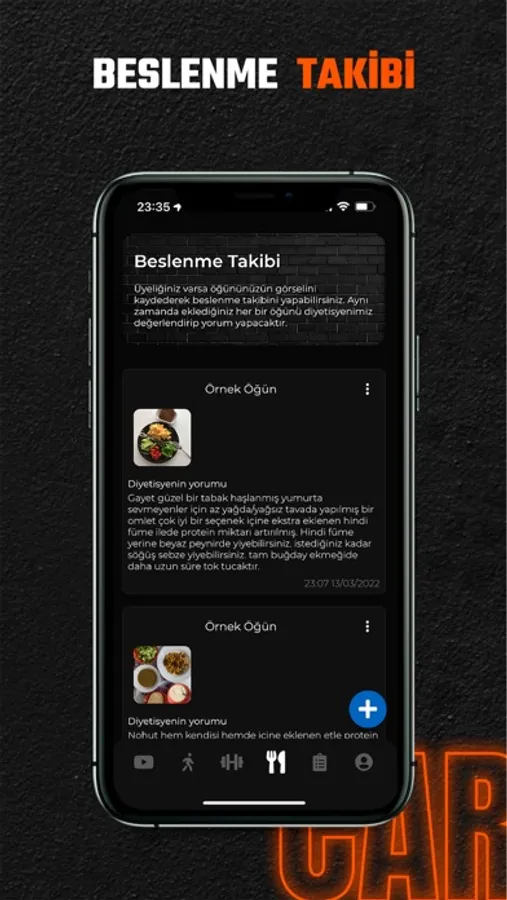 • Beslenme takip modülü ile öğünlerinizi ekleyebilir, diyetisyen değerlendirmesi alabilir ve en iyi
