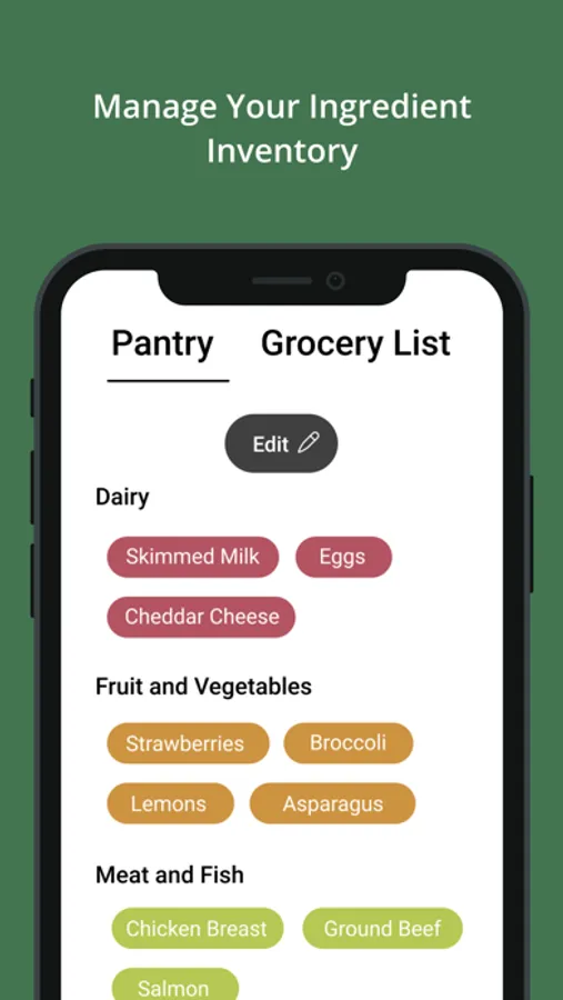 - Manage your ingredient pantry and use it as a grocery list when you are shopping.