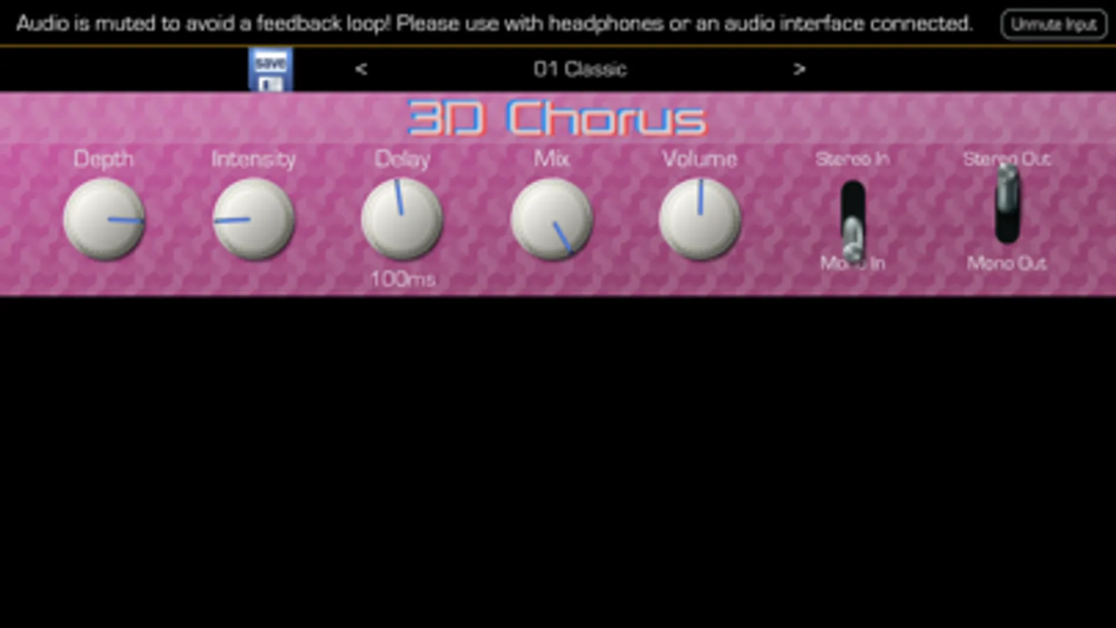 3D Chorus is a modern take on the classic dimension chorus effect. More than just a remake, it offers adjustable parameters and input / output configurations to create chorus effects ranging from extra subtle to totally detuned.
