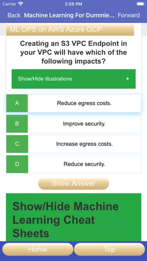 Important: To succeed with the real exam, do not memorize the answers in this app. It is very important that you understand why a question is right or wrong and the concepts behind it by carefully reading the reference documents in the answers.