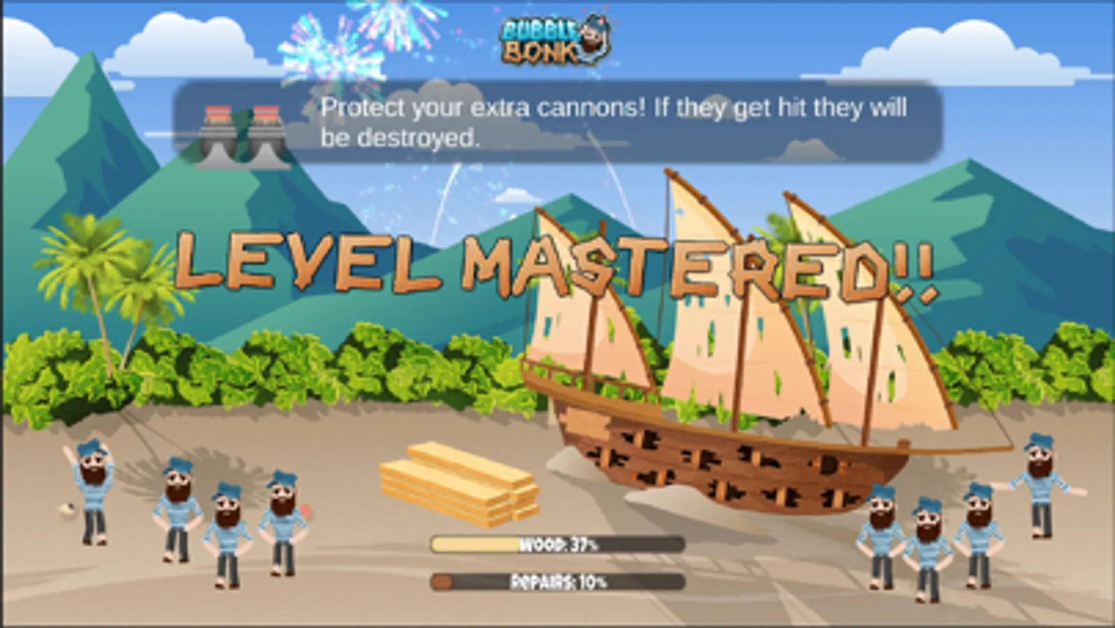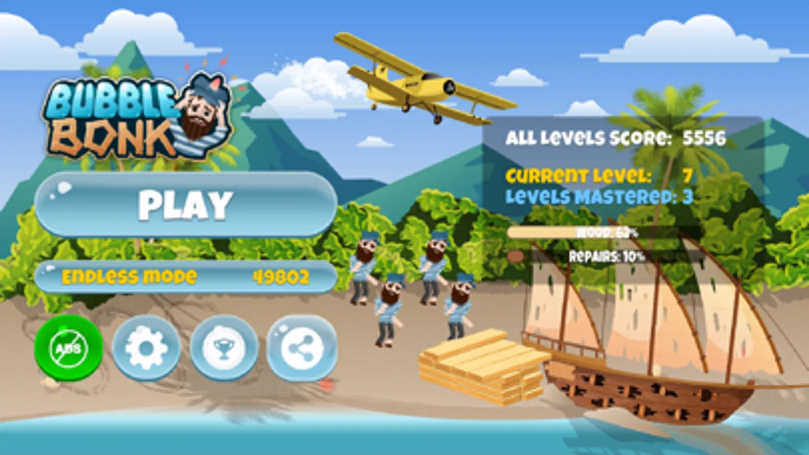 Don't get bonked on the head! Shoot bubbles at crates to protect your survivors! Shoot at buffs to add more cannons and fire faster. Each level gives you more wood to patch up the ship. Patch all the holes to win the game and get off the island! Bubble Bonk is easy to learn. It's fast, furious and fun!