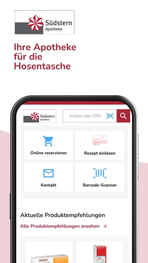 Die Südstern-Apotheke Salzgitter für unterwegs: Mit unserer App haben Sie unsere Gesundheitsleistungen immer mit dabei.