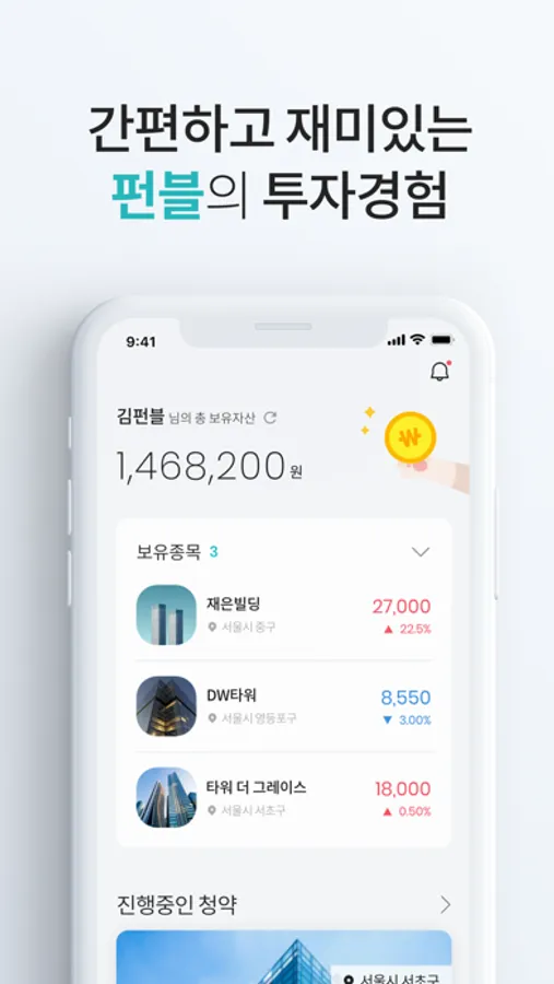 - 건물의 수익권을 펀블의 DAS(Digital Asset Securities)로 쪼개어 소액으로 투자할 수 있어요.