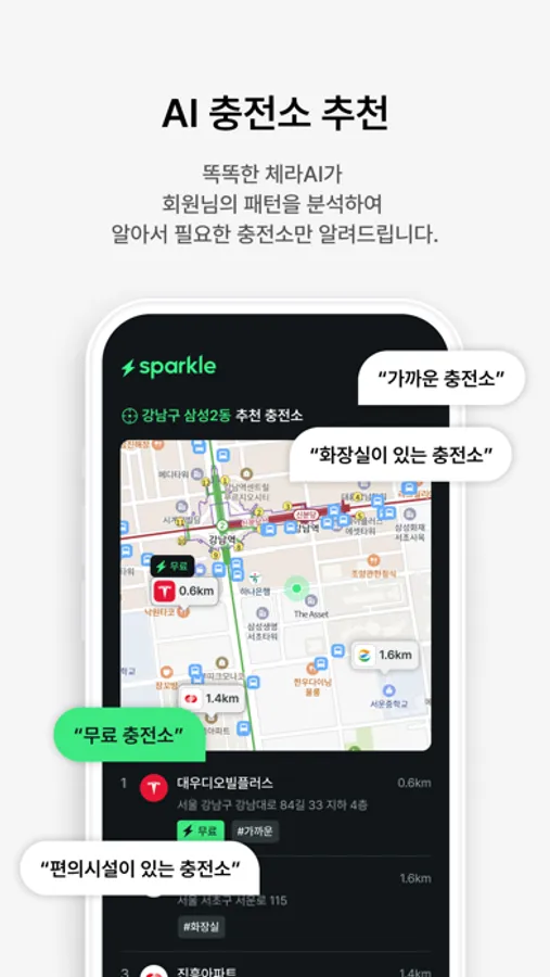 스마트한 체라AI가 "바로 그" 충전소만 선별해 알려드립니다.